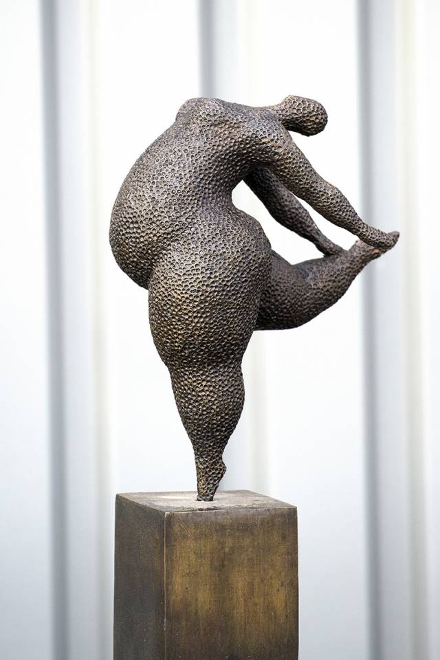 Artikel 40014 : bronzen beeld-vrouw figuur op blok 4- modern